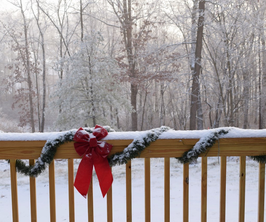 This morning we woke to our first winter in five years. Snow was covering everything, at least everything up to two inches! But, snow it is and what a welcome sight.