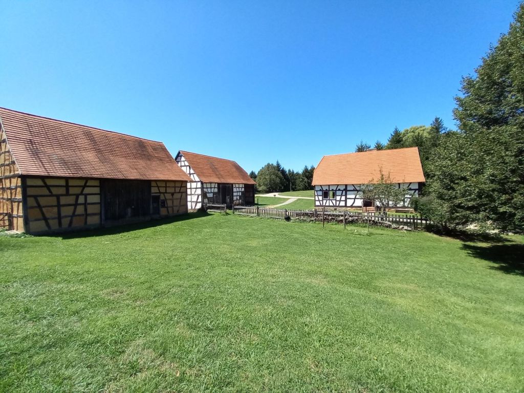 English Home and Farm, Frontier Culture Museum, Staunton, VA. Note chimney date, 1692. The house was actually built in 1630