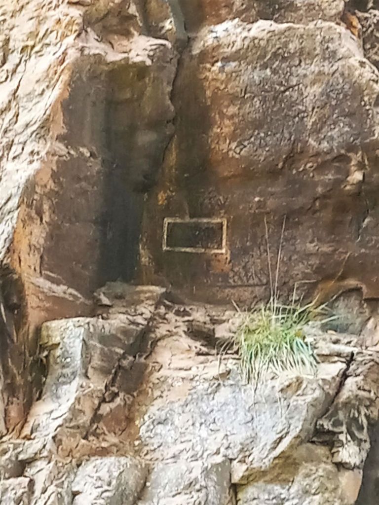 What the…? Not using headphones (why bother) the air was filled with static, crackles, pops, screeches and toots of every sort. Selecting a spot that emitted a steady screech I knelt down and began digging with the trowel. Rocks. More rocks. This can’t be, I thought. I held the machine up to a few and yep, the signal was louder than ever. There was a ton of iron in those rocks. Hmmm. Maybe that’s why I had read of there being so many pre- Civil War small iron smelters in the area . Well, I thought, let me move to another likely spot, with a different tune playing, so to speak. Ah, for the love of Pete. I can’t get up. My knees have locked! Trying to look just inquisitive rather than flummoxed, I root around a bit more until I spy a nearby sturdy looking branch and knee-waddle over to it to hoist myself upright. Jaysus!! The fookin’ thorns pierce my leather palmed gloves. Bugger me! This is rough work, I’m thinkin’. But, I’m up.